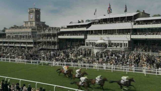 We needed to ensure the crowd felt natural and alive – and adding parasols really helped. And although we had been told that the women at that time wouldn’t raise their arms over their heads when cheering the horses on, we ignored that for the deepest background to get a bit more movement.”